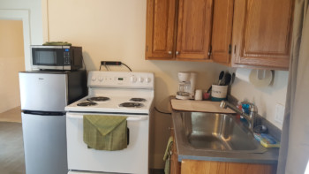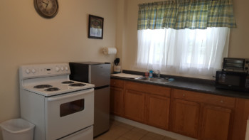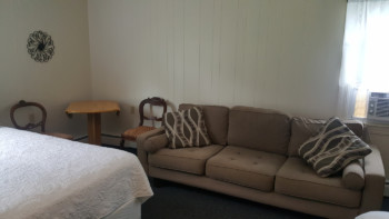 Unit 17 is a spacious unit on the first floor. This units bedroom area is equipped with three queen beds, ac/heat, smart flat screen TV with cable, dresser, alarm clock, couch, table and chairs. There is also a private bathroom with a hair dryer and essentials. There is a full kitchen area equipped with a dining table set, hutch, fridge, microwave, stove, and all the basic kitchen amenities one might need.