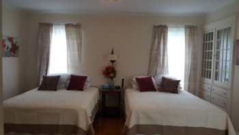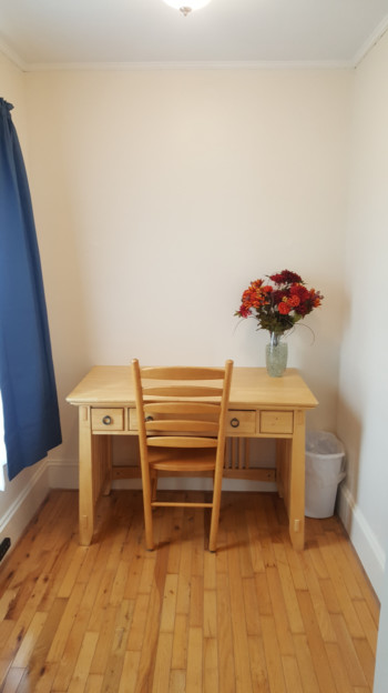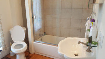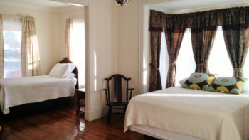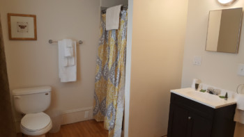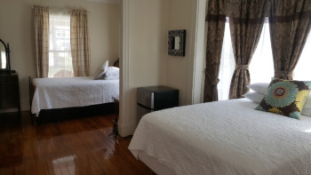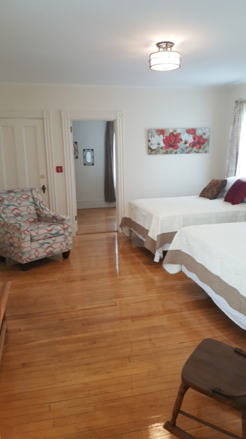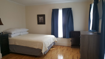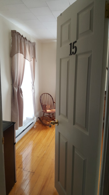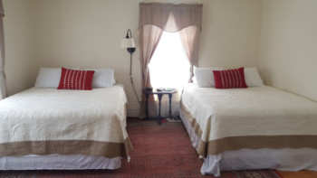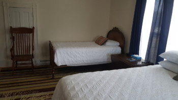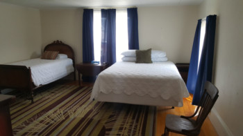 UNIT 16 is a well appointed room on the second floor with a queen and twin bed that shares a large bathroom with Unit 15. With several in room amenities including a refrigerator, alarm clock, cable TV and a shard kitchen , this room provides a quiet and comfortable stay.