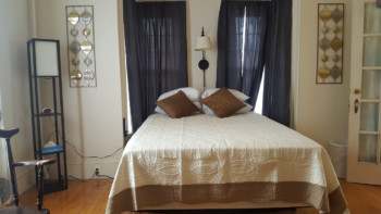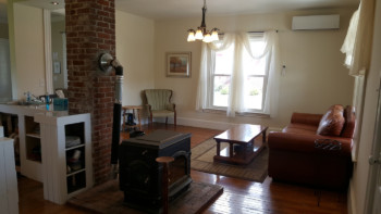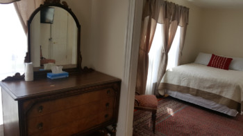 Unit 14 is a spacious two bedroom retreat located on the first floor of our 1898 victorian house located next to The Whitetail Inn in Lincoln, and is equipped with a sofa bed and Twin bed in one room.  There is an additional Queen bed in an adjoining room with a private bathroom. Additional amenities for this unit include an antique piano, alarm clock, refrigerator, community kitchen and a smart flat screen TV with cable.  This unit is ideal for a larger family.